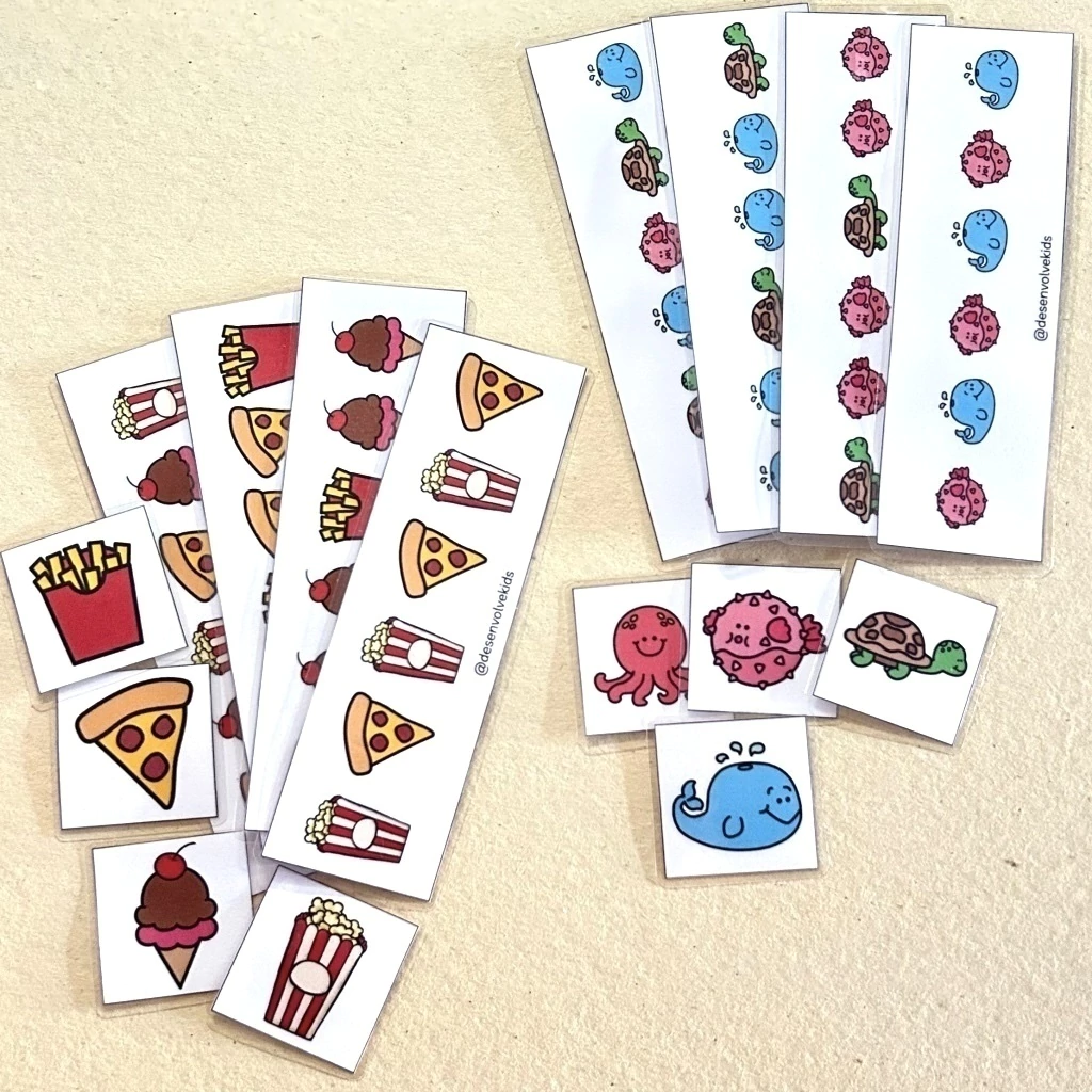 12 cards com o tema comidas com sequências AB, AAB, ABB e ABC (03 de cada)