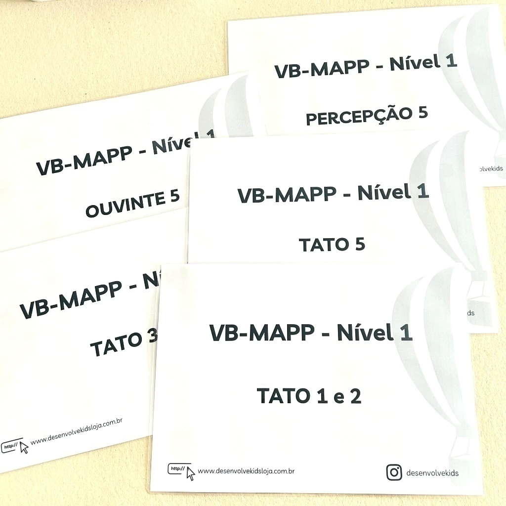 O material pode ser usado tanto para avaliação quanto para a intervenção do Tato 1, 2, 3 e 5; Ouvinte 3 e 5 e Percepção 5 – Nível 1 do VB-MAPP .